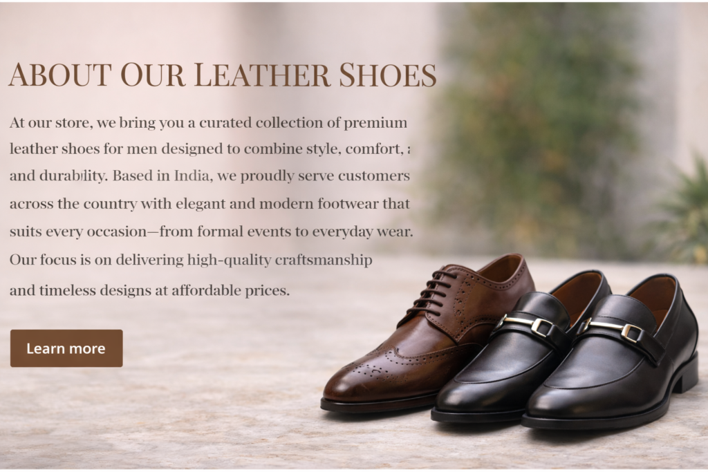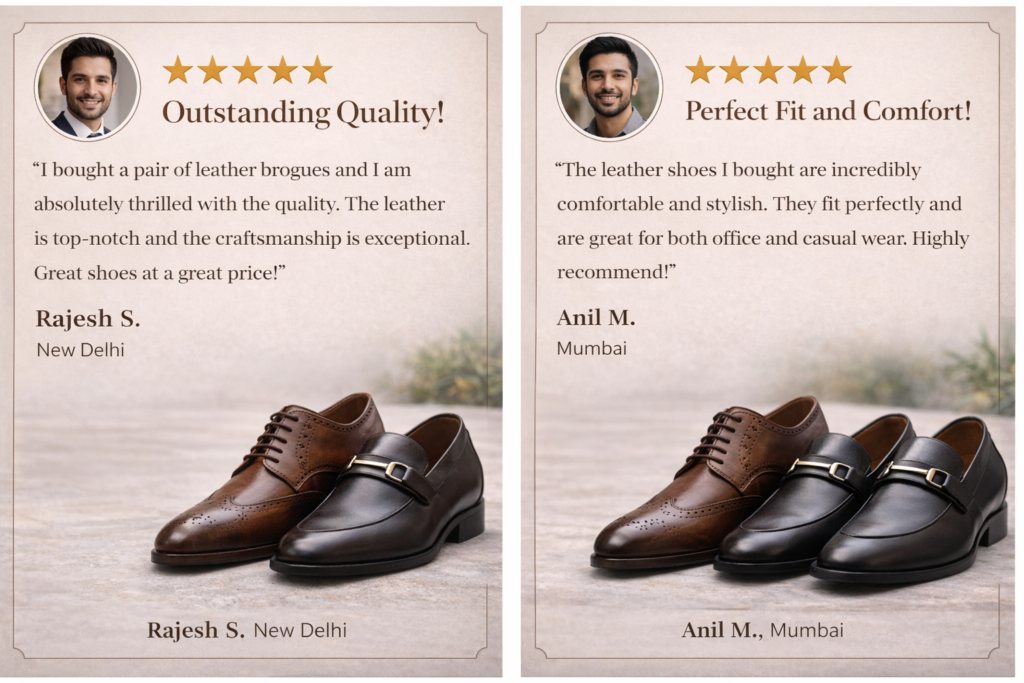 leather shoes for men in india Explore Our Collection Shop by Category 1.New Arrivals 2.Handmade 3.Wedding Special 4.Customize leather shoes Best Leather Shoes for Men in India – Premium Quality & Style About us Customer Reviews